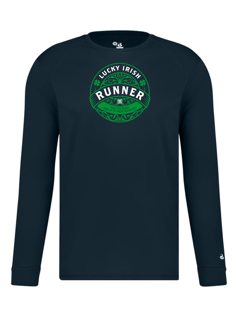 O'Race Lucky Irish Runner technical shirt features 100% polyester construction with advanced moisture-wicking technology to keep you dry and comfortable during your runs. Lucky Irish Runner design in green and white, complemented by the inspirational text "May the road rise up to meet your feet" printed across the front.